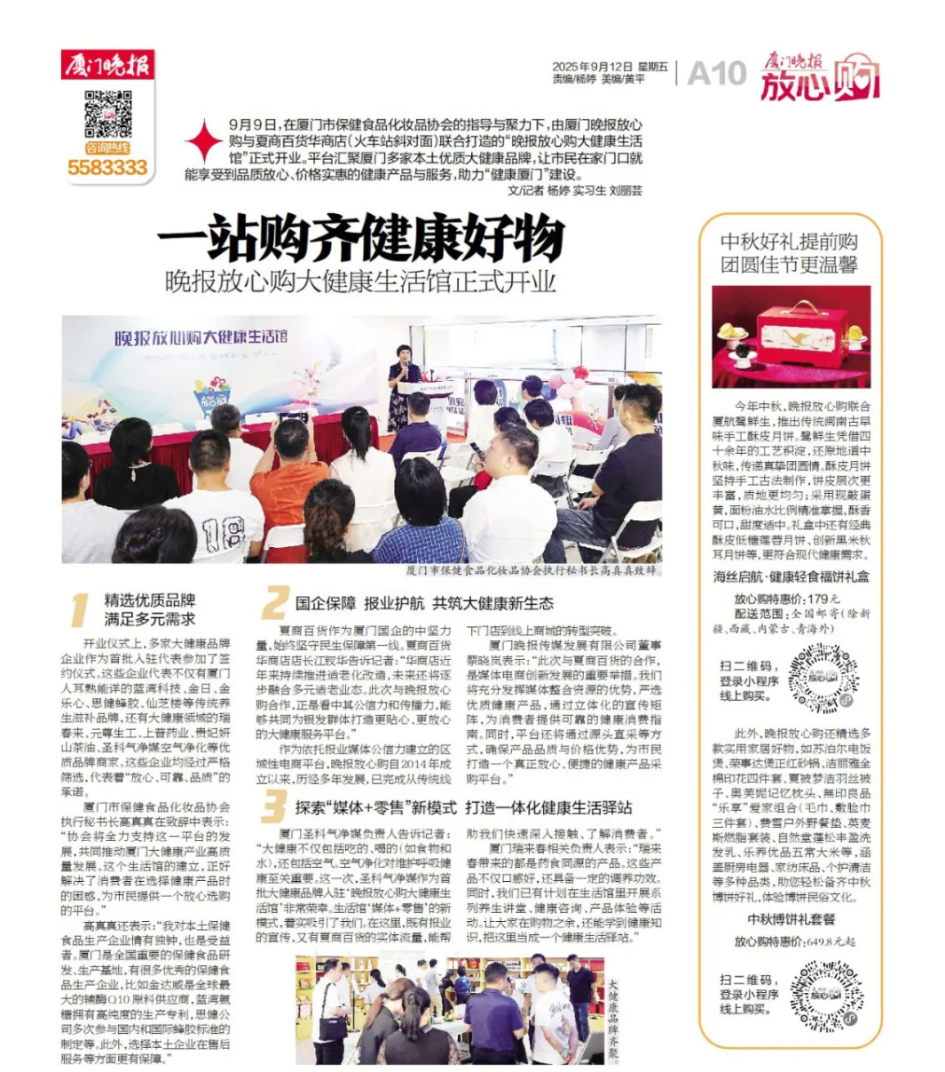 廈門(mén)晚報放心購大健康生活館正式開(kāi)業(yè)啦!思健蜂膠等系列大健康保健食品受邀入駐